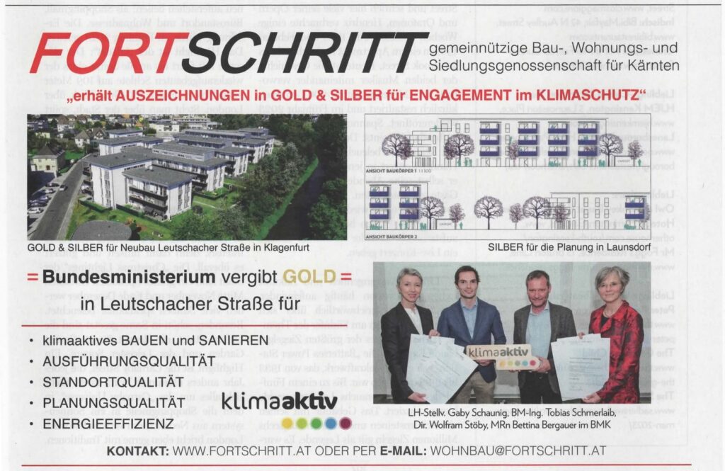 Bundesministerium vergibt GOLD für die Ausführung des Bauprojektes – Leutschacherstraße und SILBER für die Planung in Launsdorf