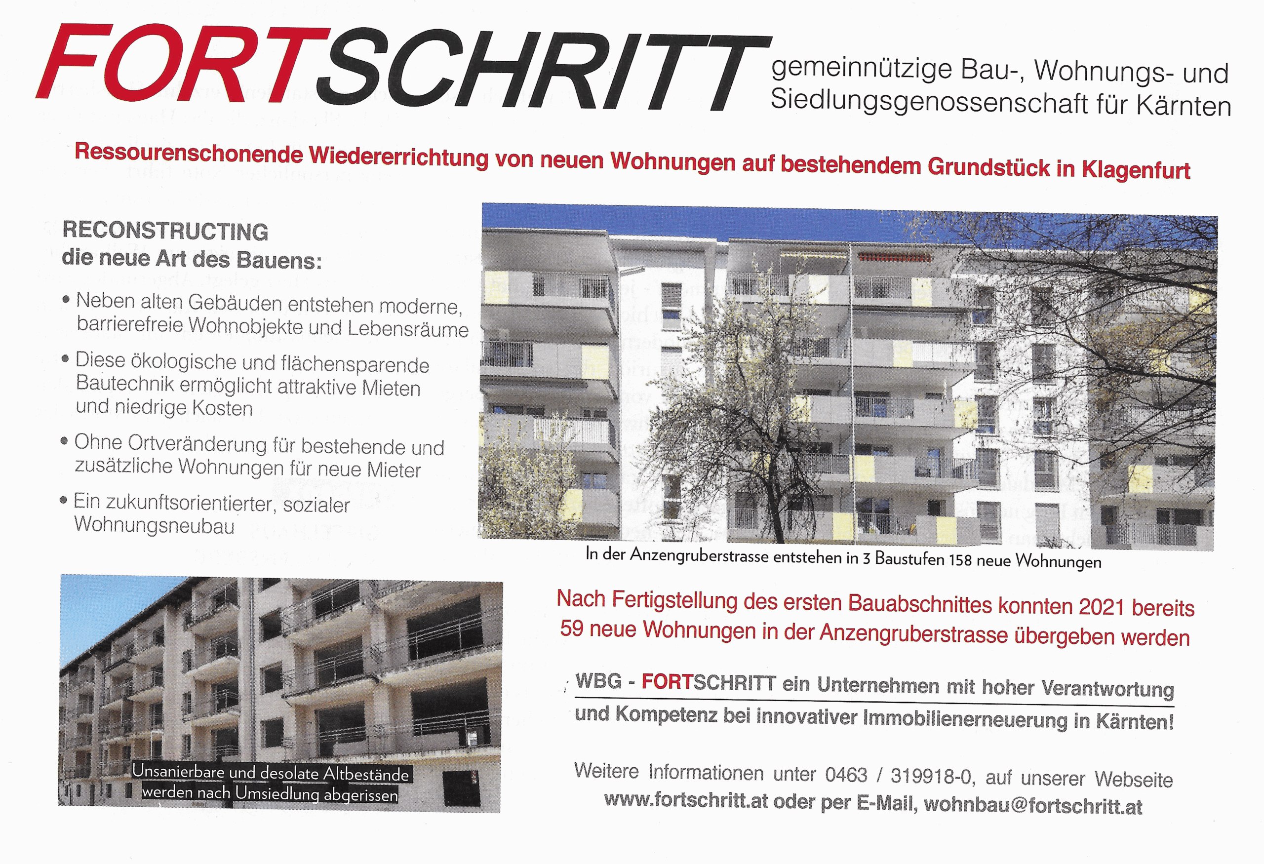 In der Anzengruberstraße in Klagenfurt entstehen derzeit in 3 Baustufen 158 neue Wohnungen der WBG-Fortschritt