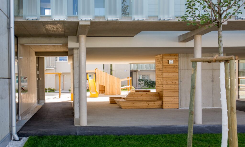 Errichtet wurden 97 Wohnungen die ausschließlich durch die Stadt Klagenfurt vergeben werden. Die Gestaltung richtete sich nach neuesten Erkenntnissen des sozialen Wohnbaus. Integriertes, die Begegnung förderndes, Wohnen bildete die Grundlage für die Gestaltung und Anordnung dieser Anlage am Mühlgang.