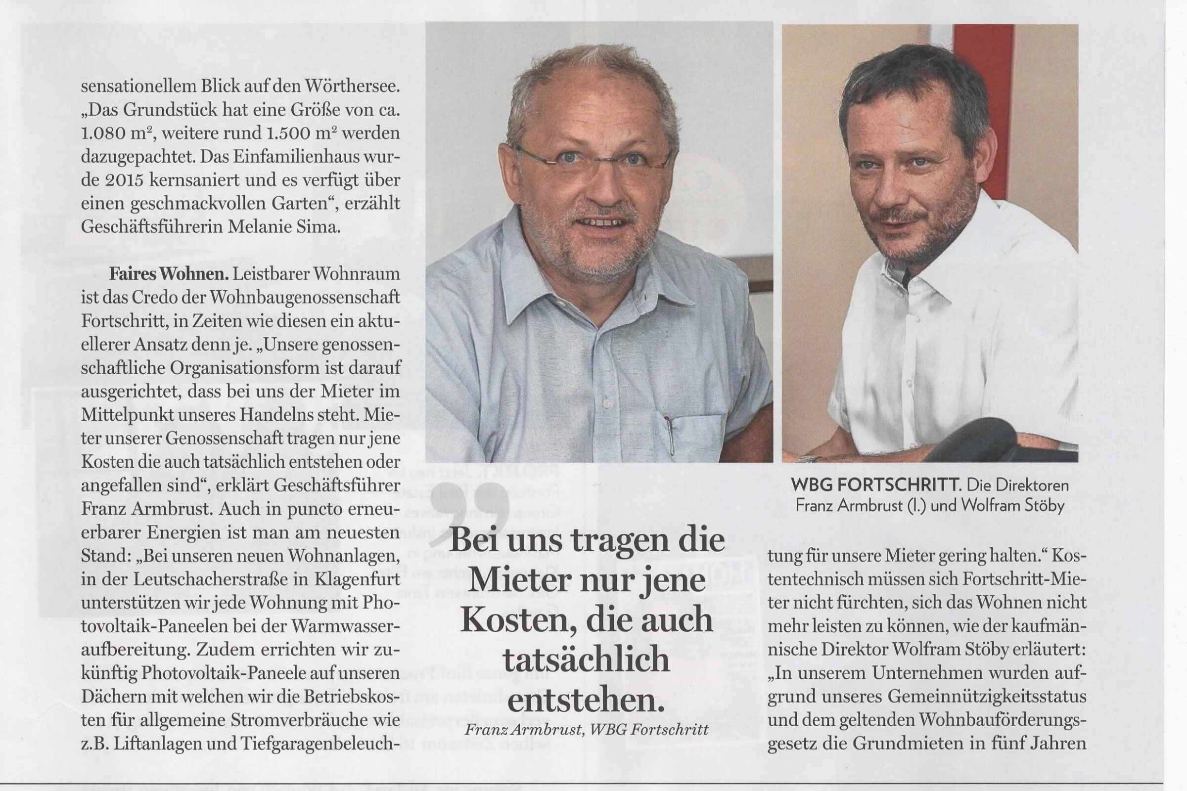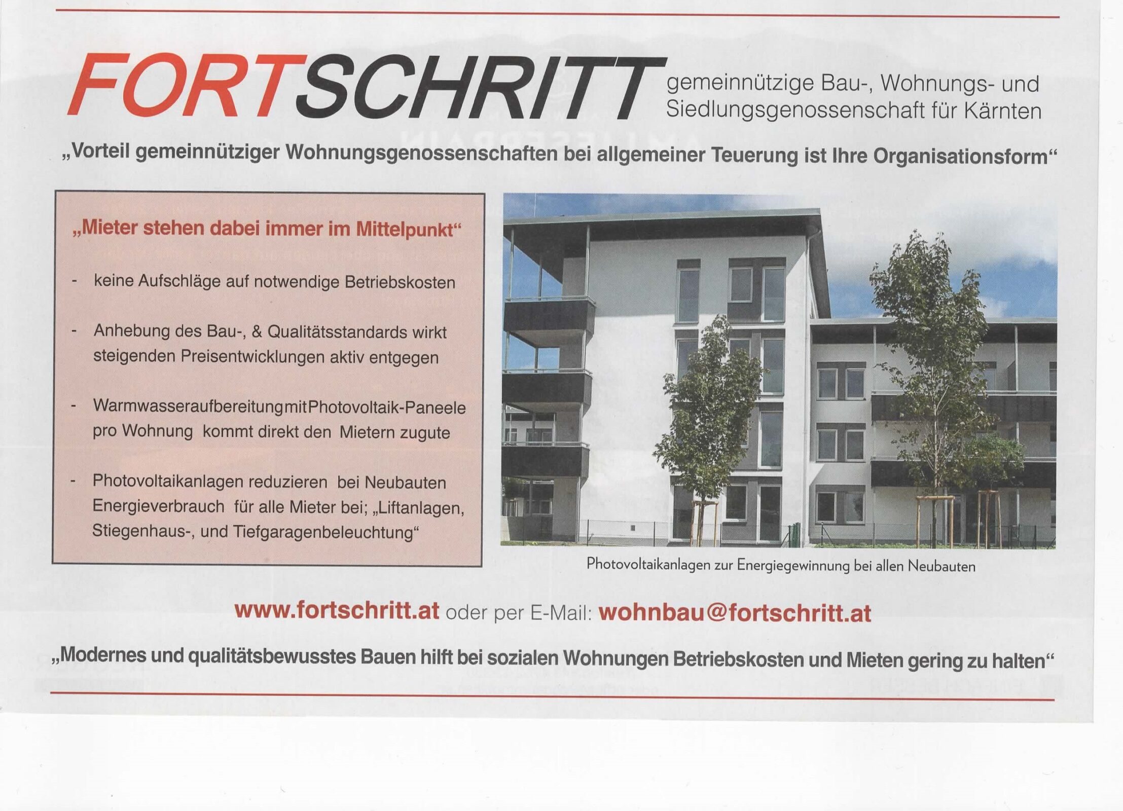 Die FORTSCHRITT als gemeinützige Wohnbaugenossenschaft hat den Vorteil nicht gewinnorientiert handeln zu müssen!